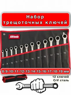 Ключи гаечные накидные с трещоткой 8-19 мм набор, 12 шт