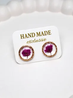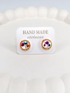 Серьги с пластиковым гвоздиком с сухоцветами гипоаллергенные