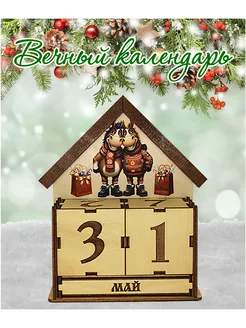 Вечный календарь из дерева с кубиками на Новый год лошади