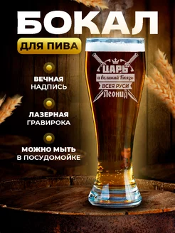 Бокал для пива именной Леонид