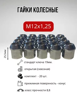 Гайки колесные м12х1.25 высота 35 мм 20 шт