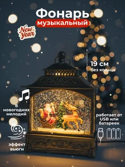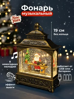 Музыкальный фонарь сюрприз новогодний со снегом поющий