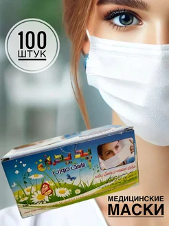 Маски медицинские белые одноразовые трехслойные 100 штук