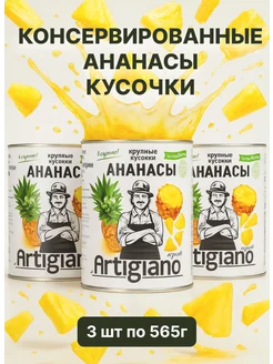 Ананасы консервированные кусочками 3 шт по 580 мл