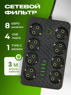 Удлинитель сетевой фильтр 3м с USB и Type-C