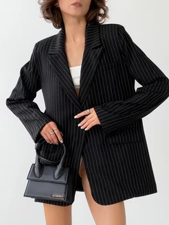 Жакет удлинённый оверсайз чёрный в полоску