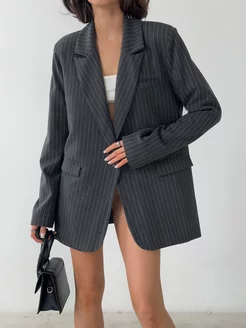 Жакет удлинённый оверсайз серый в полоску