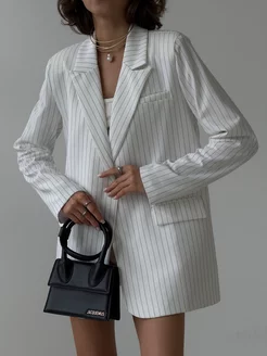 Жакет удлинённый оверсайз белый в полоску