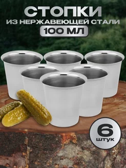 Стопки простые, из нержавеющей стали, 100 мл, 6 шт