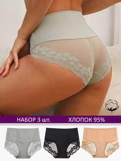 Набор кружевных трусов с высокой посадкой 3 шт ХБ