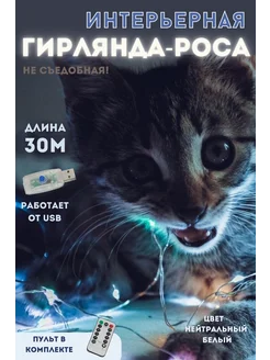 Интерьерная гирлянда-роса 30м от сети через USB