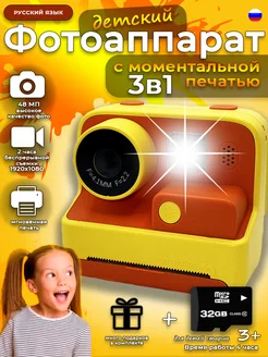 Детский фотоаппарат с моментальной печатью + флешка на 32 гб