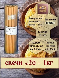 Свечи церковные восковые № 20 (пачка 1 кг)