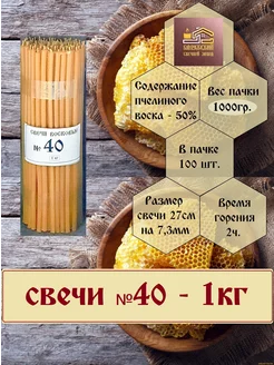 Свечи церковные восковые № 40 (пачка 1 кг)