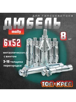 Дюбель с винтом, Молли, д гипсокартона, 6*52, 8 шт