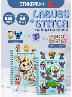 Стикербук-блокнот Labubu-Стич набор наклеек 2 шт