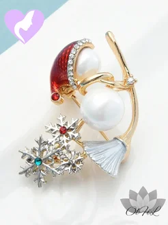 Брошь-мини Новогодний Снеговик Жемчужинка