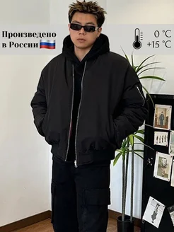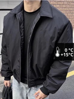 Бомбер с воротником утепленный оверсайз куртка демисезонная