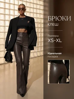 Брюки кожаные клеш классические для высоких
