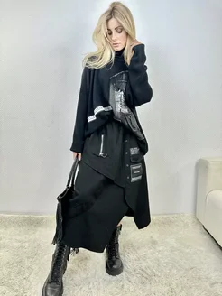 Толстовка свитер с капюшоном оверсайз с принтом и вышивкой