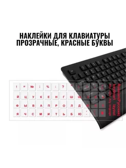 Наклейки на клавиатуру прозрачные красные буквы