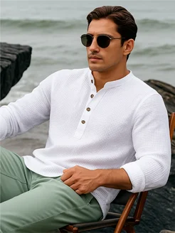 Рубашка мужскaя с длинным рукавом белая модная приталенная