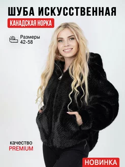 Шуба искусственная короткая с капюшоном под норку автоледи