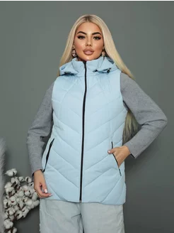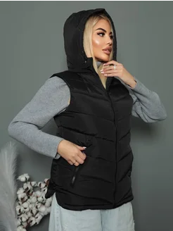 Жилетка утепленная болоньевая с капюшоном на молнии