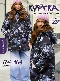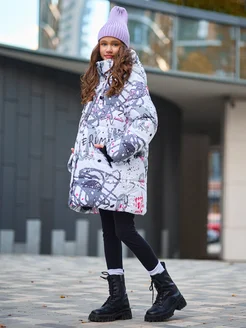 Куртка зимняя для подростка удлиненная с капюшоном