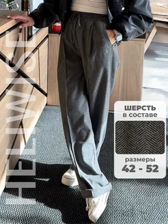 Утепленные брюки шерстяные на резинке офисные с затяжками