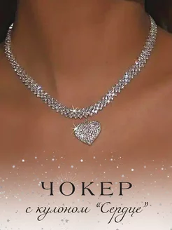 Чокер со стразами с сердцем на шею