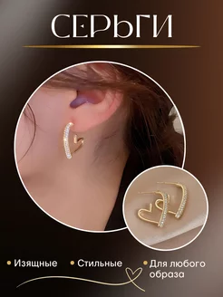 Серьги сердечко со стразами