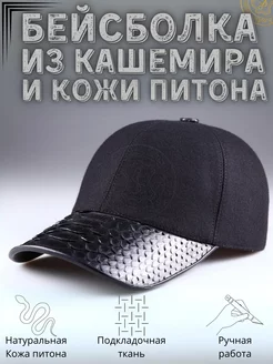 Кепка ручной работы из кашемира и натуральной кожи питона