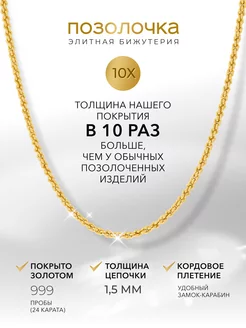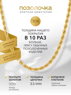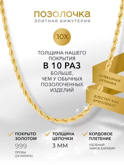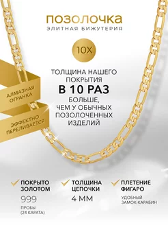 Позолоченная цепочка полновесная Фигаро 4 мм