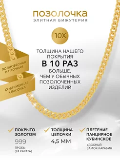 Позолоченная цепочка полновесная панцирная кубинская 4,5 мм