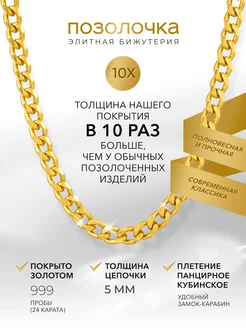Позолоченная цепочка полновесная панцирная кубинская 5 мм