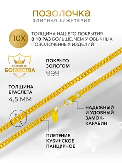 Позолоченный браслет полновесный панцирный кубинский 4,5 мм