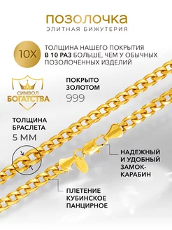 Позолоченный браслет полновесный панцирный кубинский 5 мм