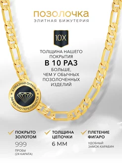 Позолоченная цепочка полновесная ФИГАРО 6 мм