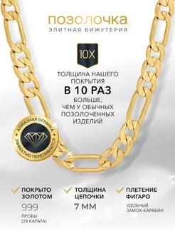 Позолоченная цепочка полновесная ФИГАРО 7 мм
