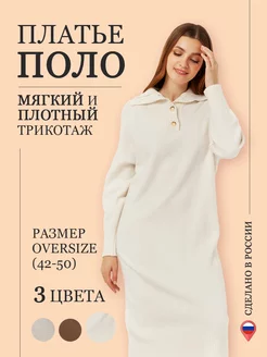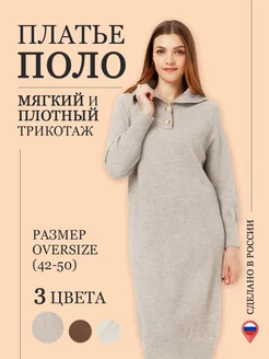 Трикотажное платье поло теплое оверсайз на зиму и осень