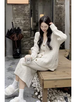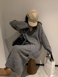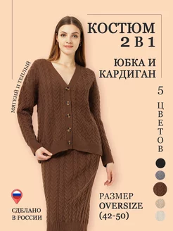 Вязаный костюм с юбкой и кардиганом теплый на осень и зиму