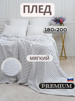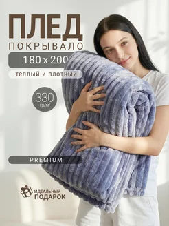 Плед плюшевый на кровать и диван 200 220, Евро, велсофт