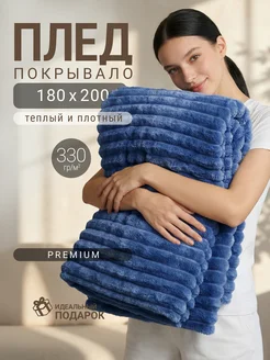 Плед синий(плотный) на кровать и диван 180х200, 2,0 сп