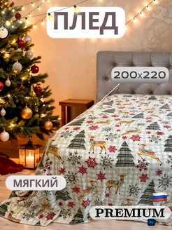 Плед Евро 200х220 Новогодний с оленями