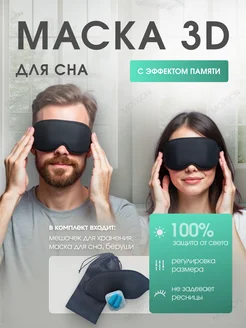 Маска для сна дышащая мягкая черная с мешочком и берушами