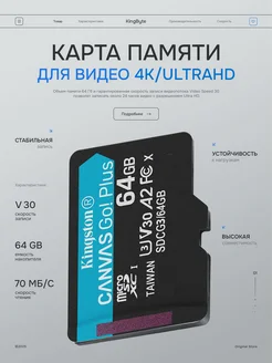 Карта памяти 64 Гб микро сд для видеорегистратора и телефона