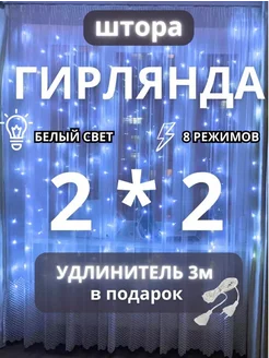 Гирлянда штора 2x2 белая на окно