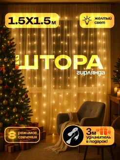 Гирлянда штора 1,5x1,5 желтая на окно