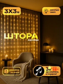 Гирлянда штора 3x3 желтая на окно